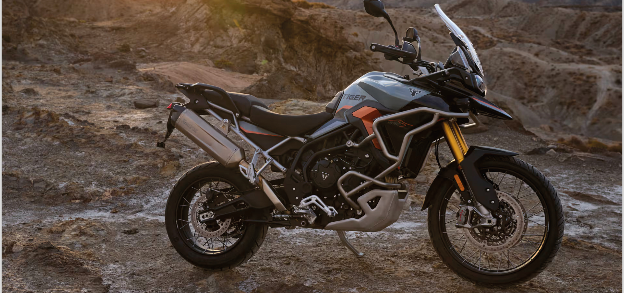 Die neuen Alpine und Desert Special Editions der Tiger 900 Reihe punkten mit exklusiven Lackierungen, sowie Updates in Sachen Performance und Ausstattung. Erstmals kommen Adventure-Modelle von TRIUMPH serienmäßig mit Akrapovič-Schalldämpfern. Die auf den Schwerpunkt Touring ausgelegte Tiger 900 Alpine Special Edition erhält zusätzlich einen Motorschutzbügel, während die 900 Desert Special Edition für noch mehr Offroad-Tauglichkeit mit Schutzbügeln am Kraftstofftank ausgestattet ist.